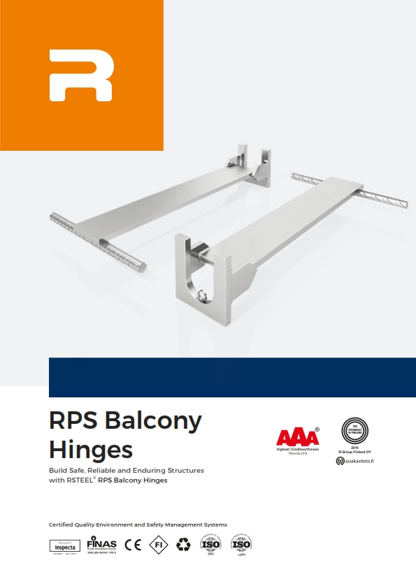 A UNIQUELY designed solution to connect supported balcony slabs to the building safely while enabling vertical movements of up to 14 mm due to temperature changes. These are steel parts used in pre-cast concrete buildings to transfer horizontal loads from balcony slab to the building floor and at the same time allowing vertical movement of balcony due to temperature changes. RPS balcony hinge consists of R30 or R36 lifting anchor installed to the balcony slab before casting and balcony hinge steel part installed to the floor grouting. These parts are connected with an attachment screw.