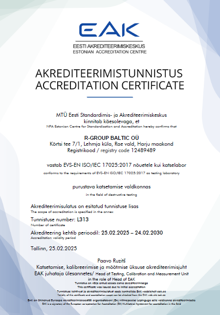 R-Group Baltic OÜ is highly aware of the importance of impartiality in destructive mechanical testing and ensures the independence of its operations.